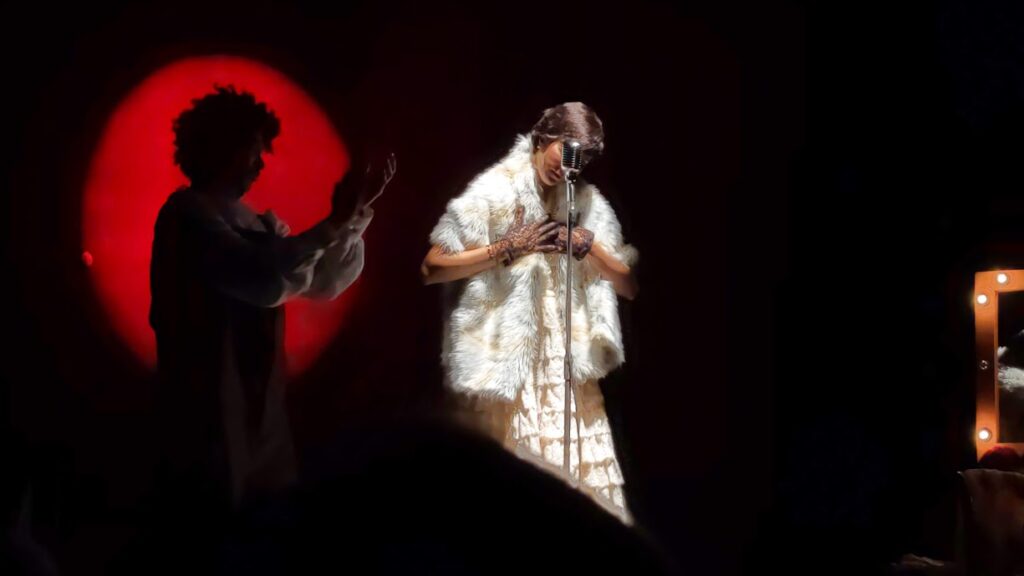 El peso fundamental de la actuación apela a la consistencia interpretativa de Nileny Dipton, a con el soporte histriónico de Wilson Ureña, y reforzado por el uso de recursos fundamentales del teatro, sobre todo la y el vestuario, muestras de talento de Fidel López (escenografía) y el espectacular vestuario (Sócrates Cabral y Bautista Sierra).
