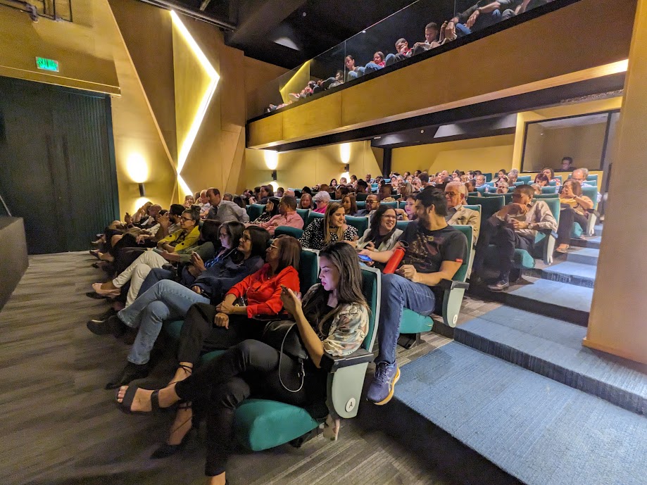 A la entrada vimos, con alegría, una larga fila de gente en procura del no establecido derecho de lograr otra vez la mágica conexión que genera el hecho teatral.