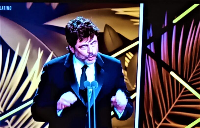 Benicio del Toro agradece su Premio Platino al Mérito.