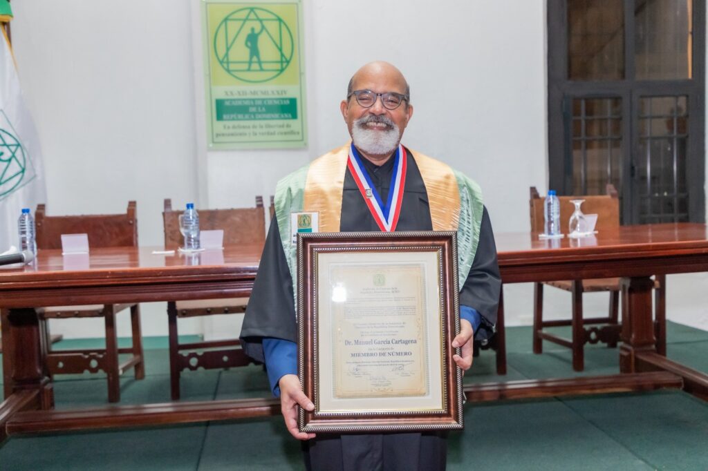 Santo Domingo, R. D., 26 de abril, 2023.- El reconocido escritor dominicano Manuel García Cartagena fue investido este jueves 20 de abril como Miembro de Número de la Academia de Ciencias de la República Dominicana (ACRD), por sus aportes en más de cuatro décadas de servicios a la cultura y la sociedad.
