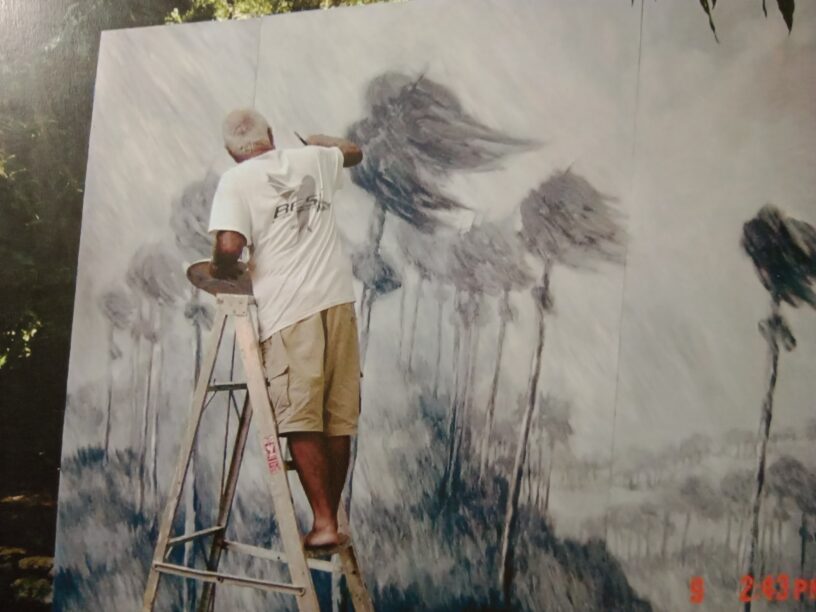 El maestro Rafi Vásquez mientras pintaba uno de sus cuadros de gran formato. FOTO: Centro de Arte Rafi Vásquez.