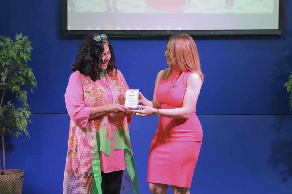 ‘El rol de la Biblioteca se transformó de ese rol tradicional, de apoyo e incentivo a la lectura, en un rol mucho más amplio, integral, más holístico. Este es un espacio que ha democratizado: la cultura, el arte, la lectura, para nuestra juventud y nuestra niñez’. Manifestó la señora Gloria Reyes, directora de Supérate al dirigirse a los invitados tras recibir un reconocimiento por el apoyo brindado al desarrollo de las iniciativas de la BIJRD.