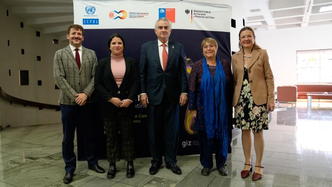 De izquierda a derecha: el Ministro de Energía de Chile, Diego Pardow; la Ministra de la Mujer de Chile, Antonia Orellana; el Secretario Ejecutivo de la CEPAL, José Manuel Salazar-Xirinachs; la ex Presidenta de Chile, Michelle Bachelet; y la Embajadora de Alemania en Chile, Irmgard Maria Fellner (foto: CEPAL).