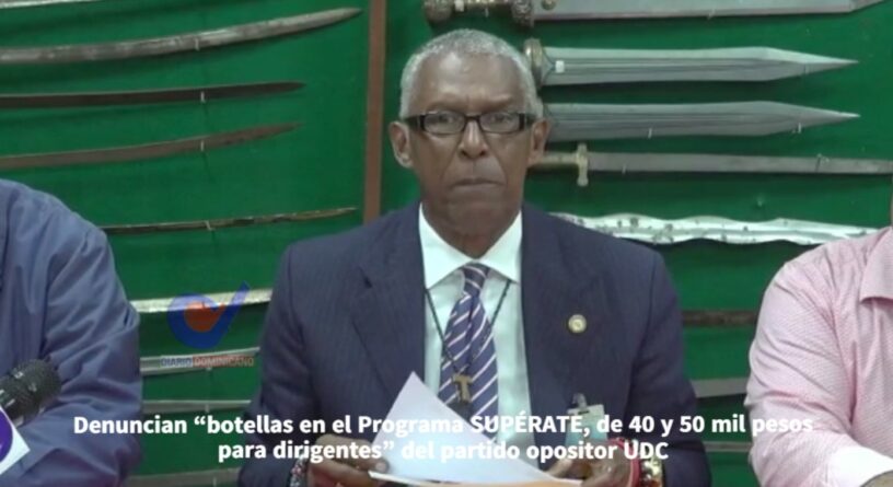 Santo Domingo.- “Se le ha dado al partido Unión Demócrata Cristiana botellas en el programa Supérate, de 40 y 50 mil pesos a algunos dirigentes del partido, y que me desmientan si eso es mentira”, dijo de manera categórica el secretario general de la UDC, Leonardo Antonio Suero, al hablar en una conferencia de prensa en la que denunció negociaciones secretas entre el presidente de este partido de opositor con el gobierno.