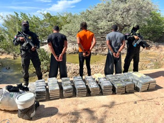 Luego de iniciada la operación, equipos tácticos y de reacción, interceptaron a varias millas náuticas al sur de Alto Velo, de la referida provincia, a tres individuos a bordo de la embarcación, en cuyo interior se ocuparon varios sacos conteniendo los paquetes de la sustancia.