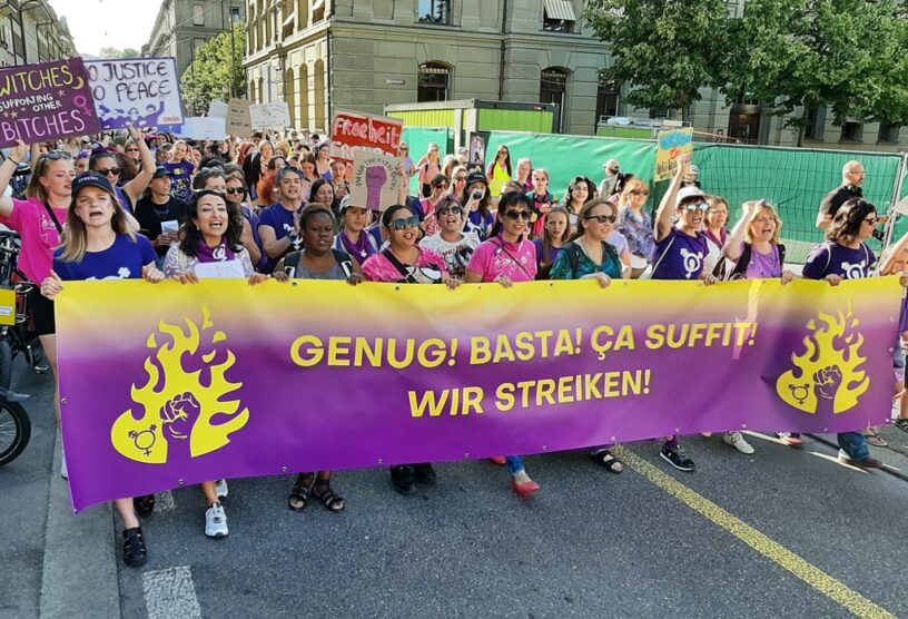 La marea violeta inundó Suiza. Con voces de protesta fundamentalmente jóvenes. Donde lucha feminista y por la diversidad se dieron la mano con reivindicaciones sindicales y climáticas. Sacudón relevante en una sociedad — como pasa en buena parte de Europa a la excepción de Francia y Gran Bretaña — que recién ahora parece comenzar a recuperar las calles para protestar contra el nuevo ajuste de tuerca antisocial que se da con el correspondiente desmantelamiento progresivo de un Estado social cada vez más amenazado.