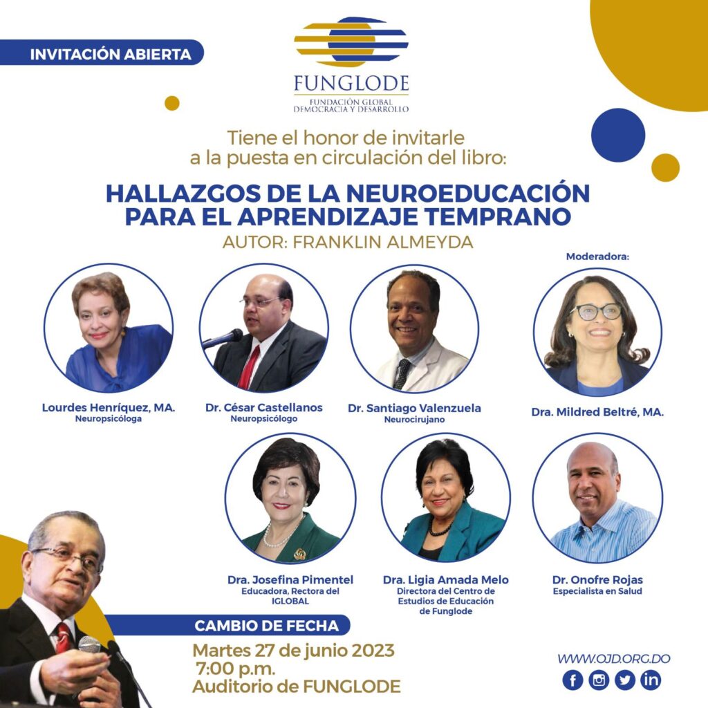 En el acto participarán Lourdes Henríquez, MA. Neuropsicóloga, Doctor César Castellanos, Neuropsicólogo, Doctor Santiago Valenzuela, Neurocirujano, Doctora Mildred Beltré, MA, Doctora Josefina Pimentel, Educadora, Rectora del IGLOBAL, Doctora Ligia Amada Melo, Directora del Centro de Estudios de Educación de Funglode y el Doctor Onofre Rojas, Especialista en Salud.