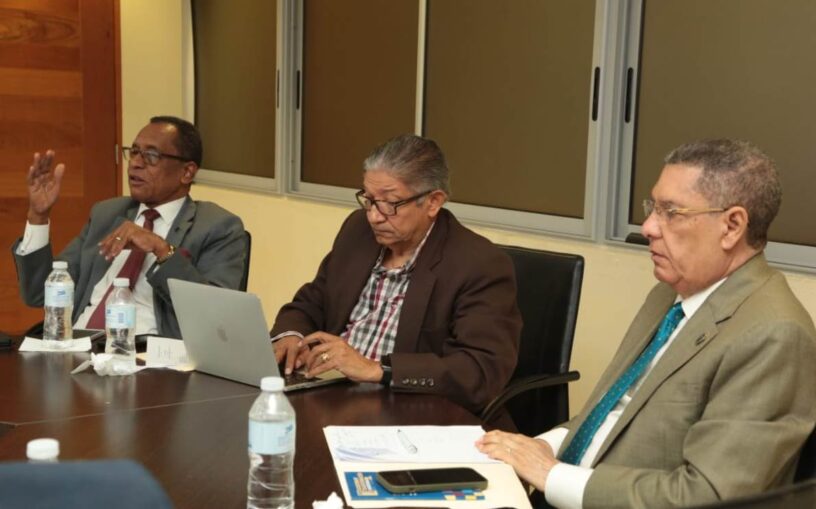 El ex rector de la UASD, maestro Roberto Reyna, junto al director de Cooperación Nacional e Internacional, maestro Antonio Medina Calcaño, y el director de Calidad, durante la reunión de la Comisión de Reforma Universitaria.