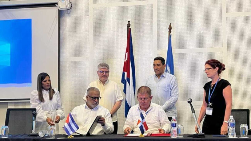 Cuba, 29 de junio, 2023.- En el marco de la Undécima Reunión de Directores de Aviación Civil de Norteamérica, Centroamérica y el Caribe, evento organizado por la Oficina Regional de la Organización de Aviación Civil Internacional (OACI), el presidente de la Junta de Aviación Civil (JAC), José Ernesto Marte Piantini, y el del Instituto de Aeronáutica Civil de Cuba (IACC), Armando Luis Daniel López, suscribieron un Protocolo de Enmienda al Acuerdo sobre Transporte Aéreo entre ambas naciones en presencia de Eduardo Rodríguez Dávila, ministro de Transporte de la República de Cuba, y Juan Carlos Salazar, secretario general de la OACI.