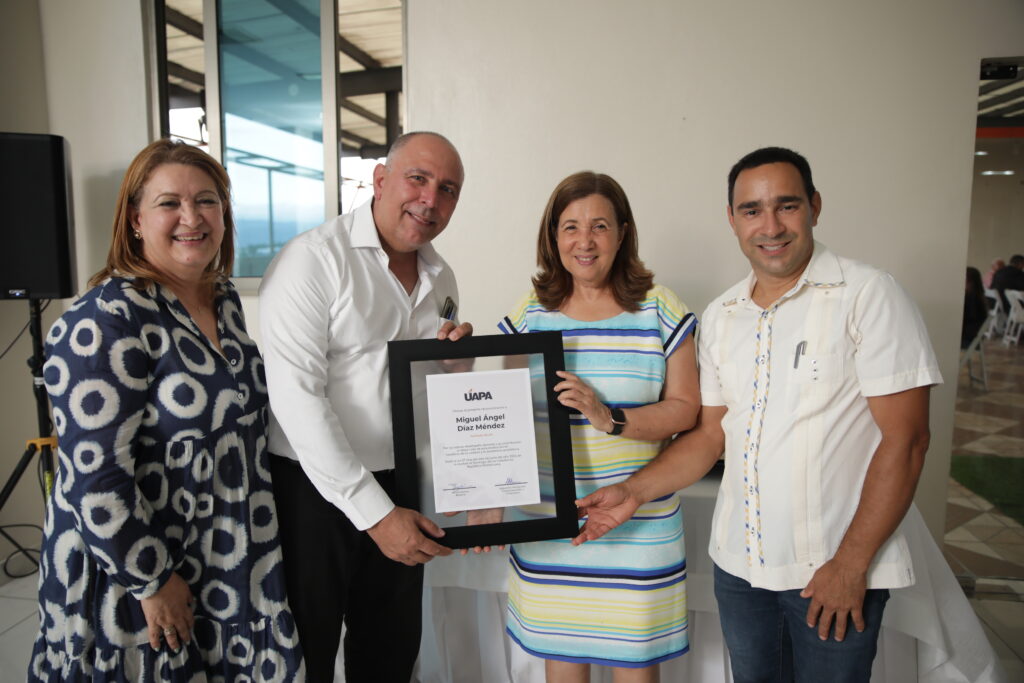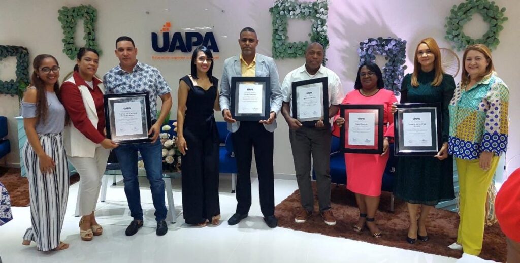 En el Recinto Santo Domingo Oriental, la universidad pionera en educación a distancia, entregó reconocimientos del Año a : Chichi Rivera ( Esc . Negocios ), Domingo de La Cruz ( Esc. Educación), Leonor Martínez ( Esc. Ciencias Jurídicas ), Carmelita Pérez ( Esc. Psicología), Libonny Pérez ( Postgrado), destacados por escuelas.