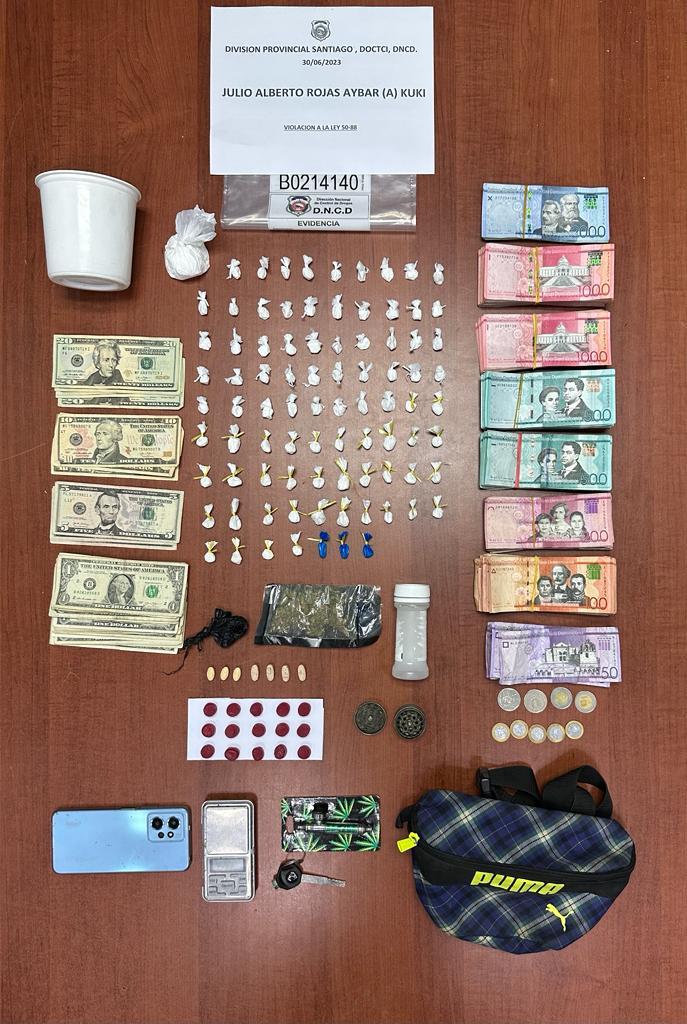 En Camboya, agentes de la DNCD arrestaron al reconocido distribuidor de sustancias controladas Julio Alberto Rojas Aybar (Kuki), a quien le ocuparon varias porciones de una sustancia en polvo que se cree pueda ser cocaína, otras de un vegetal que se presume es marihuana, dinero en efectivo en pesos y dólares, y pastillas que podrían ser de la conocida droga éxtasis.
