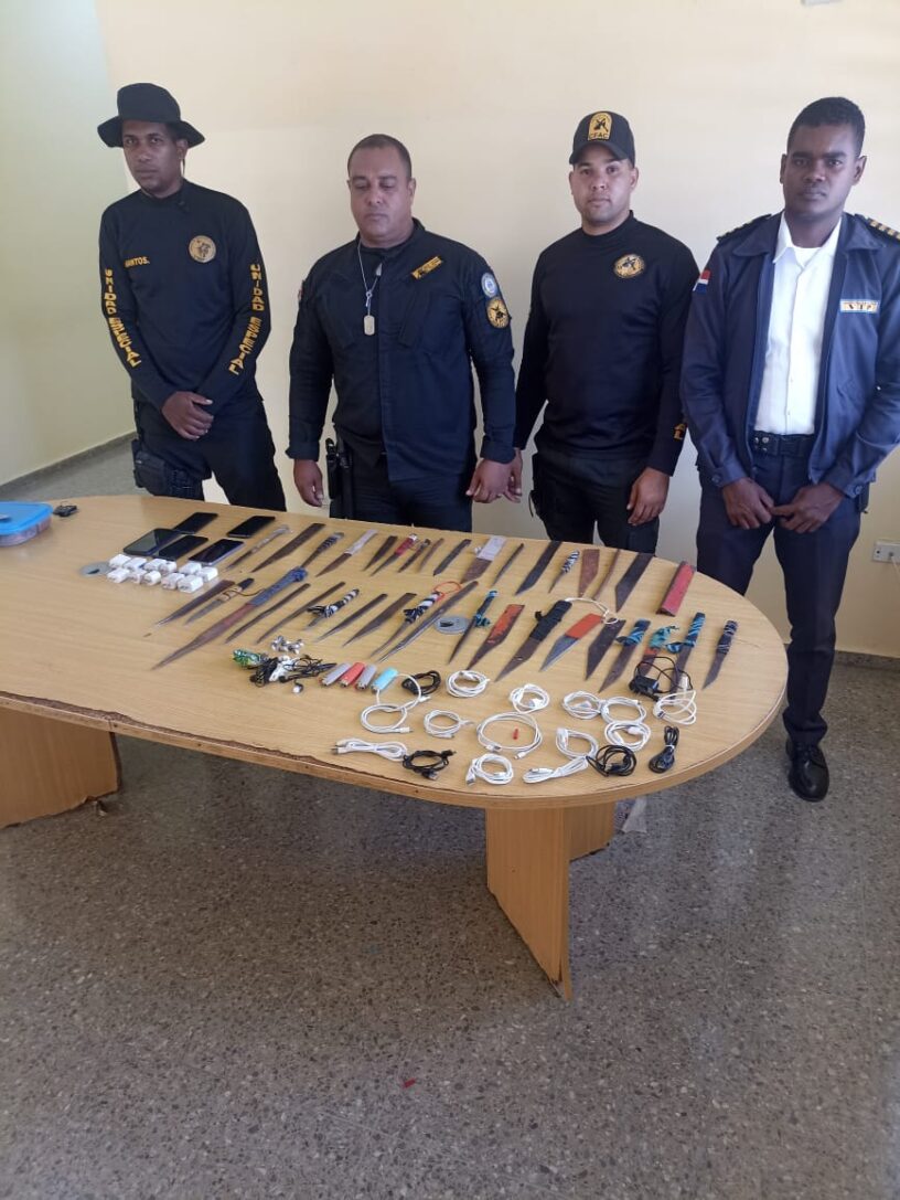 LA VEGA, República Dominicana.- Las autoridades penitenciarias y los organismos de seguridad del Centro de Corrección y Rehabilitación El Pinito, de La Vega, realizaron un operativo en este recinto penitenciario donde incautaron una gran cantidad de objetos cortopunzantes, aparatos electrónicos y tabacos, informó este sábado la Dirección General de Servicios Penitenciarios y Correccionales (DGSPC).