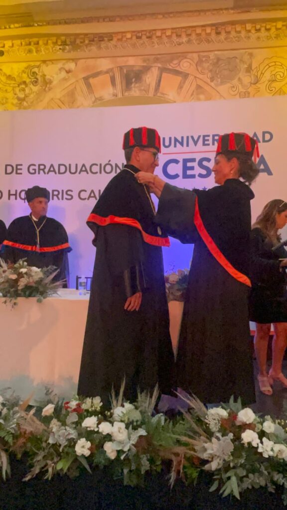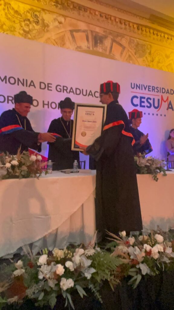 La alta distinción le fue conferida al titular del Ministerio de Defensa (MIDE), en una solemne ceremonia donde las más altas autoridades de la Universidad CESUMA encabezadas por su rector, Doctor Pablo Lamamié Declairac, otorgan a personalidades que por sus lauros personales, académicos y profesionales, han sobresalido en la consecución de logros y labores altruistas durante sus experimentadas carreras.