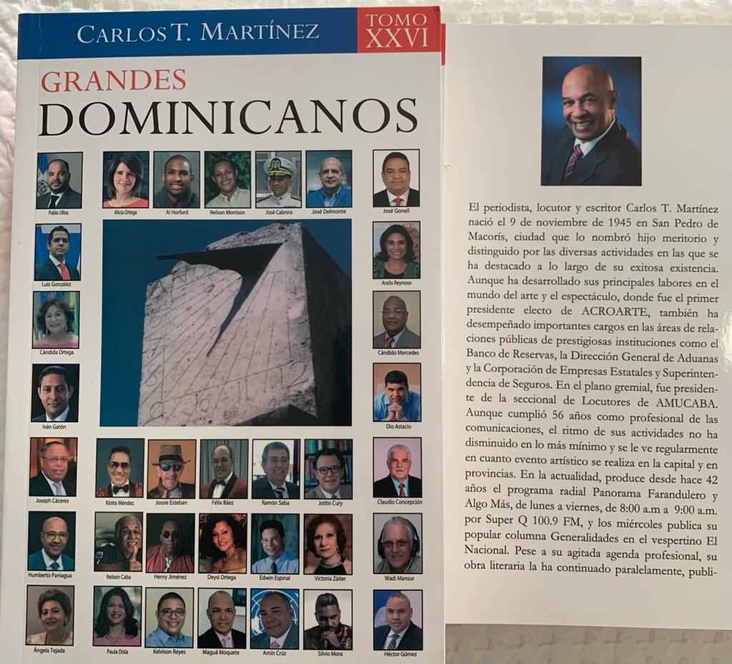 El reconocido biógrafo, novelista, compositor, periodista, locutor y escritor, Carlos T. Martínez, productor del libro” Grandes dominicanos, tomo XXVI es también fundador de la Asociación de Cronistas de Arte (Acroarte), siendo su primer presidente y desde hace más de 40 años produce el espacio radial “Panorama Farandulero y Algo Más”, el cual ya se ha constituido en toda una institución y tradición de la radio dominicana, Es un ferviente creyente en el Creador del universo.