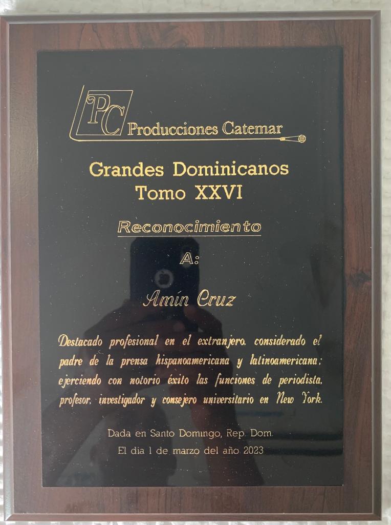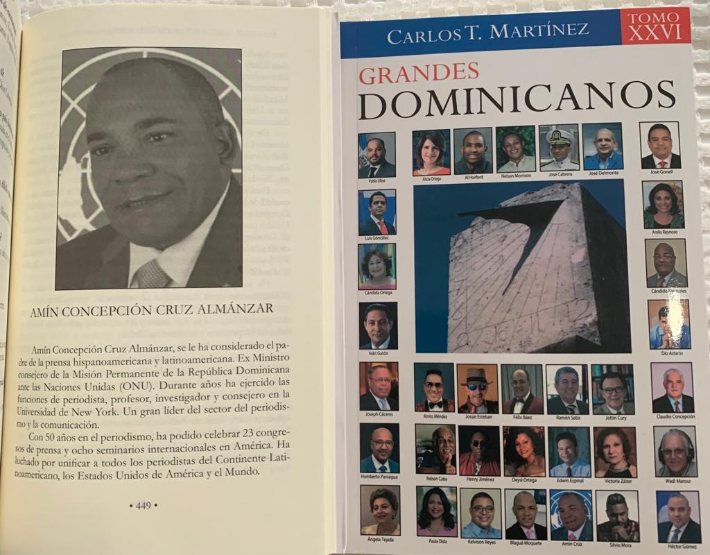 El Dr. Amín Cruz recibió el libro Grandes Dominicanos tomo XXVI, del autor Lic. Carlos T. Martínez, esta obra trae la historia y las biografías de 34 ilustres personalidades de la intelectualidad hombres y mujeres que se han destacado de la historia dominicana. personalidades de diversos ámbitos que han contribuido dentro de sus especialidades a engrandecer a la madre patria de República dominicana sobresalientes y destacados en diferentes áreas del saber humano.