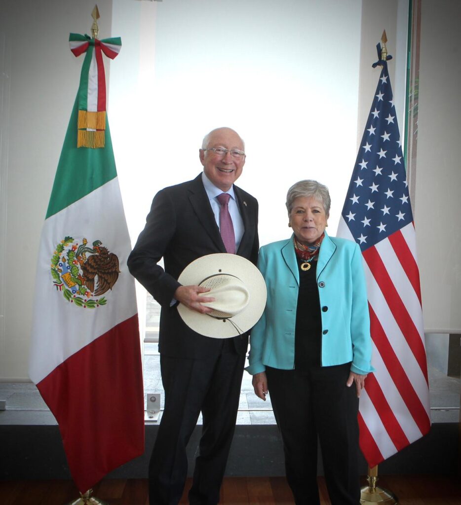 La canciller mexicana Alicia Bárcena sostuvo este martes encuentros por separado con el embajador de Estados Unidos, Ken Salazar, y con el embajador español Juan Duarte Cuadrado, las citas ocurrieron en la sede de la Secretaría de Relaciones Exteriores (SRE) de México, ubicada en la capital del país.