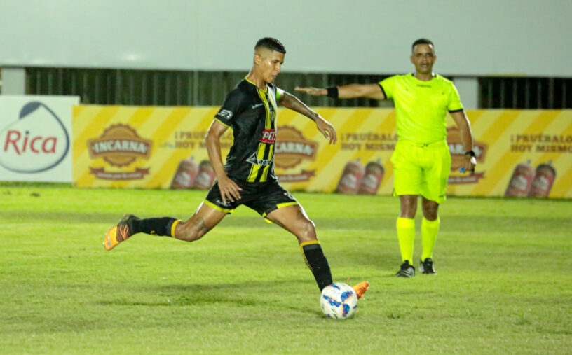 Ejecutando de pierna derecha al minuto 67 Alejandro Carrera colocó de penal el primer gol de los aurinegros 2-1, que perdían del Atlántico con dos goles fabricados de Leonardo Becerra.