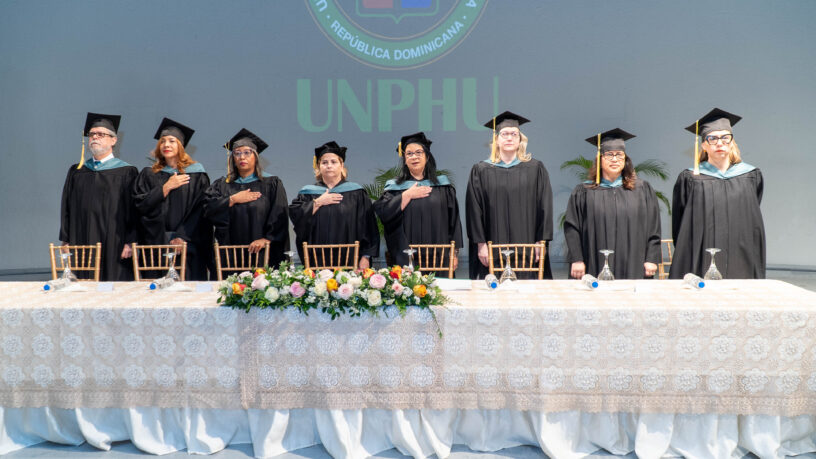 El acto estuvo encabezado por la vicerrectora académica, Lcda. Patricia Matos, en representación del rector, Arq. Miguel Fiallo Calderón, acompañada de la Dra. Leonor Farray, vicerrectora de Postrado y Educación Continuada; Lcda. Adrián de Oleo, decana de Bienestar Estudiantil; la Lcda. Geisha Carpio, decana de la Facultad de Humanidades y Educación; la Ing. Doris Peña, decana de la Facultad de Ciencias y Tecnología; la Dra. Claudia Scharf, en representación del Dr. William Duke, decano de la Facultad de Ciencias de la Salud; el Arq. Constantinos Saliaris, director de la Escuela de Diseño; y la Lcda. Yolimar Mejías, directora académica de la Escuela de Postgrado UNPHU.