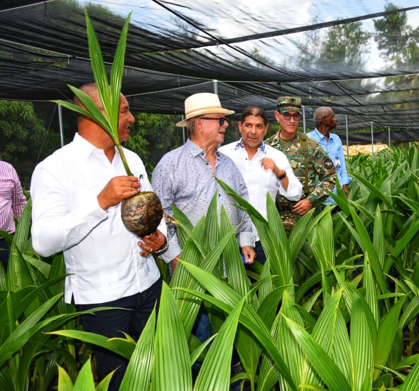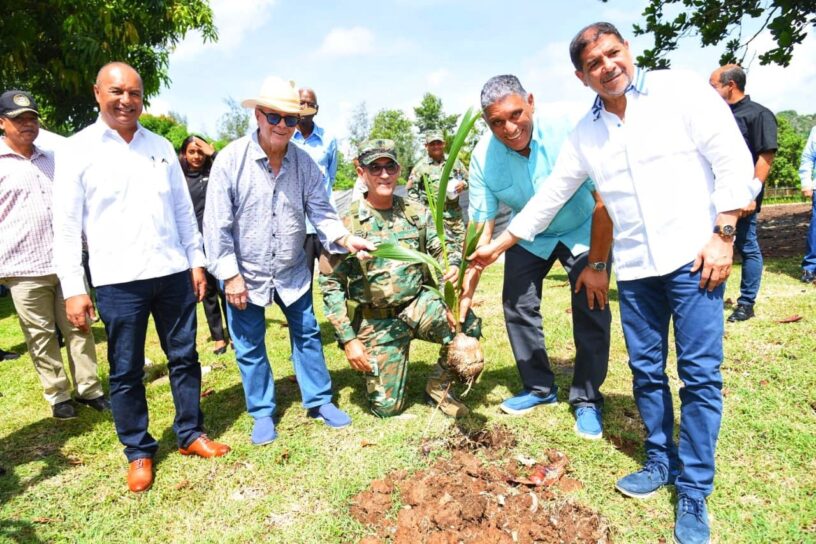 Santo Domingo, R. D., 28 de julio, 2023.- Con miras a fortalecer el programa de producción de coco en el país, los ministerios de Agricultura y Defensa inauguraron un vivero modelo de coco en el Campamento Militar 16 de Agosto del Ejército de la República Dominicana, ubicado en el kilómetro 25 de la autopista Duarte.