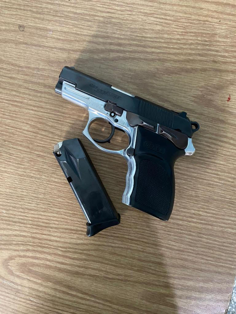 Uno de los apresados es Aneudis Nicolás Vélez Arias, de 26 años de edad, detenido mientras se encontraba en el sector Los Jardines a bordo de su vehículo, quien al ser requisado, se le ocupó la pistola marca Bersa, calibre 9, serie 755282, con un cargador y dos cápsulas.