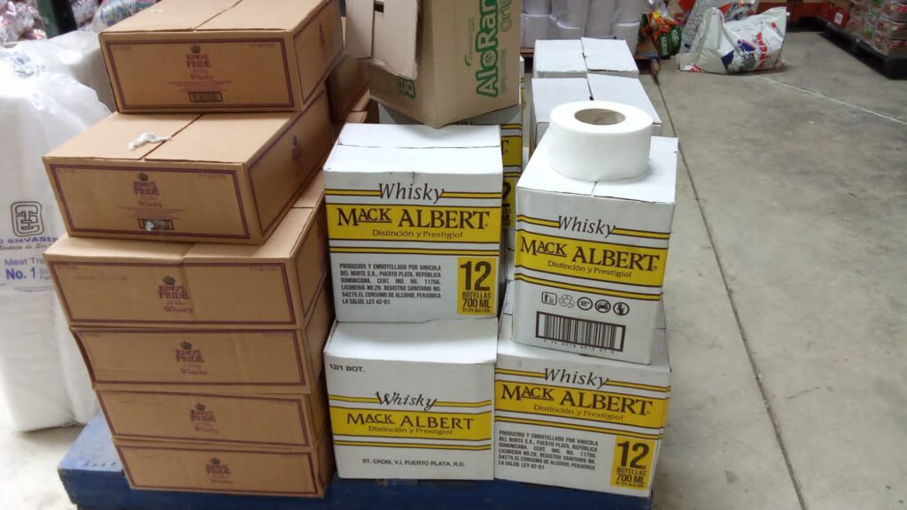 Asimismo, se encontraron e incautaron botellas falsificadas de prestigiosas marcas de whisky en sus denominaciones de 12, 15 y 18 años; tequilas; vodkas; ginebras y “canelillas”, así como diversas bebidas carbonatadas con y sin alcohol. Se ocuparon, además, decenas de cajas de estimulantes sexuales, al igual que cajas de documentos de contabilidad y facturas en originales y en copias.