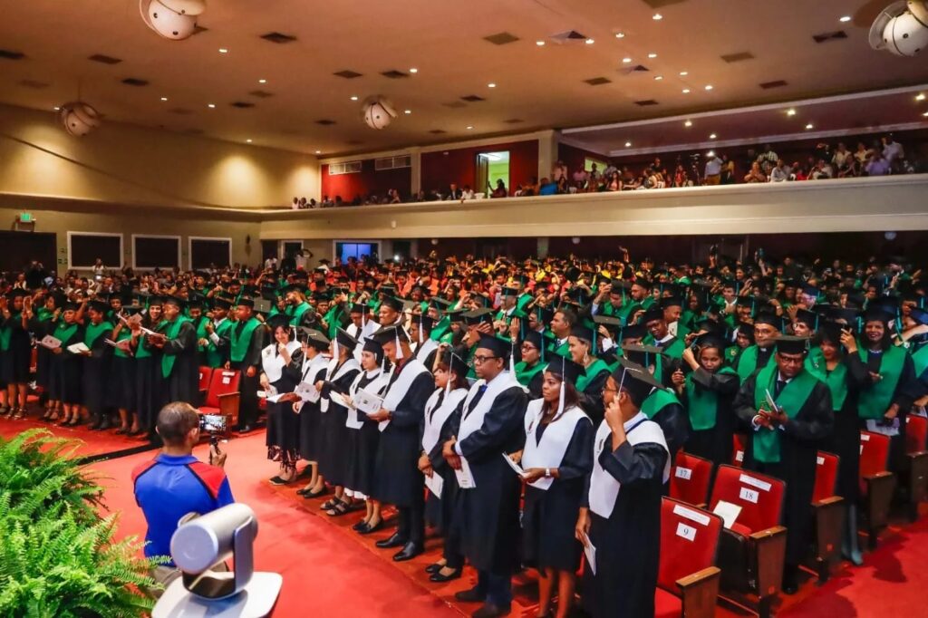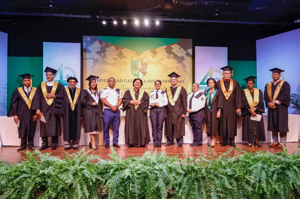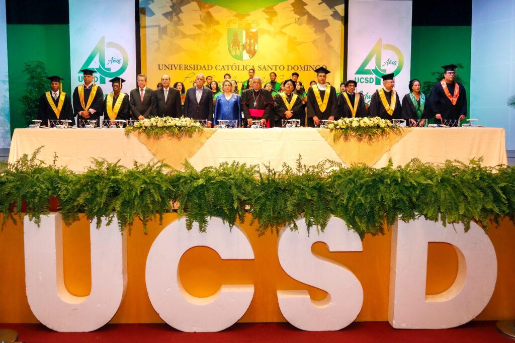 Durante el acto S.E.R. monseñor Francisco Ozoria Acosta, Arzobispo Metropolitano de Santo Domingo, presidente de la Fundación Universitaria Católica y Gran Canciller de la Universidad agradeció a Dios por los logros alcanzados a todos los graduandos de esta casa de altos estudios.