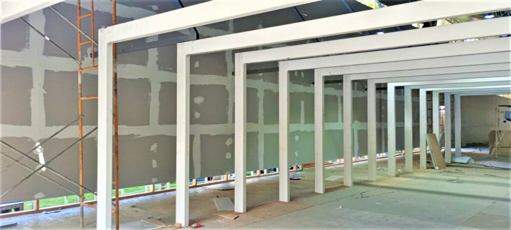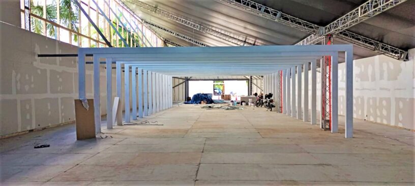 Aspectos del montaje de las estructuras de la XXV Feria del Libro Santo Domingo 2023.