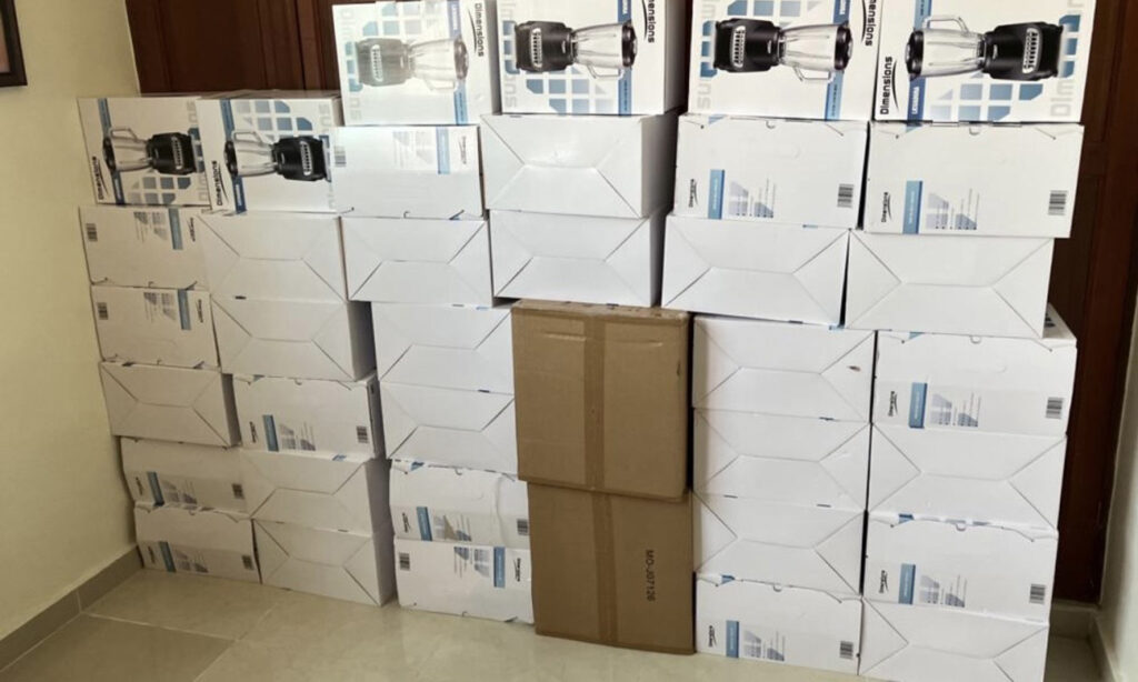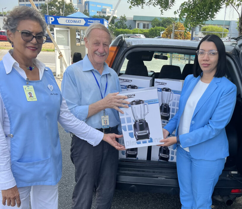 Santo Domingo, D.N viernes 24 de agosto del 2023. Fundación Juan Ml. Taveras Rodríguez agradece a la Sra. Mary Lama de Melgen por donación de 40 licuadoras a través de las empresas Plaza Lama y Comerciales Fila, las mismas fueron entregadas al Dr. Peter Stoeter, uno de los médicos de CEDIMAT y coordinadores del Proyecto Pkan para ser distribuidas entre los pacientes con la enfermedad ‘‘Ojo de Tigre’’. El gen que les afecta a los pacientes que padecen esta enfermedad, se caracteriza por la gran cantidad de hierro que acumulan en su cerebro, lo que les produce distonìa y les va inmovilizando su capacidad motora, así como les impide la ingesta de alimentos, por lo que necesitan tubos especiales que son introducidos en su aparato digestivo para permitirles comer y que no se produzca en ellos la desnutrición, que es una de las peores consecuencias de esta grave enfermedad.