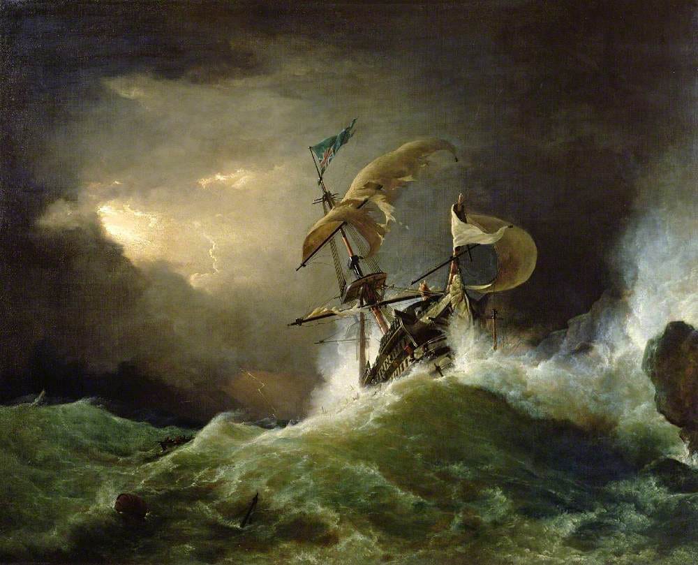 La inesperada tormenta arrecia y el oleaje mantiene un ritmo desordenado y amenazante. El silbido del viento cortante y los truenos en alocada sucesión ensordecen y acompañan la lluvia que con fuerza golpea los rostros de los agotados marinos y empeora la visibilidad que advierta la cercanía de arrecifes. Al timón se aferra el engallado capitán, de esos que Antonio Porchia tipificó: «Un alma fuerte no nace de un paraíso, sino de un infierno».