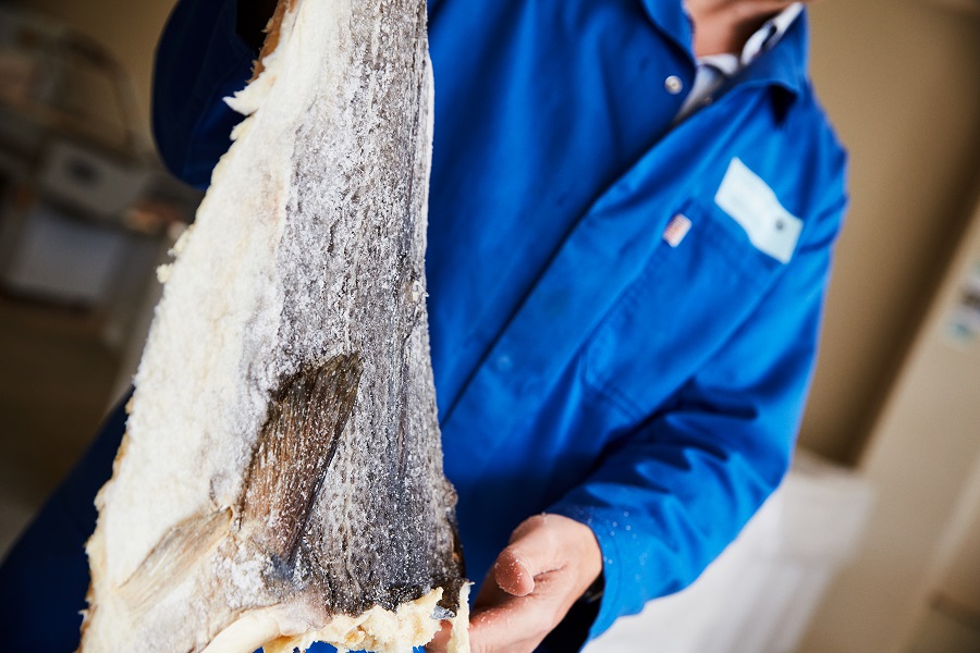 Como es criado de manera silvestre y gestionado de forma sostenible, la huella de carbono es muy baja. Una vez que el pescado es capturado, se retira la mayor parte de su espina central, operación que permite abrirlo dándole su característica forma triangular. Esto hace también que resulte más fácil salar uniformemente toda su superficie, así como secarlo y prensarlo.