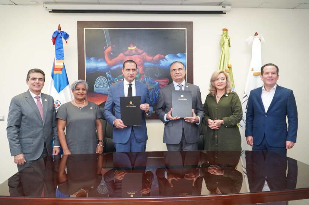Ambas instituciones impulsarán acciones vinculadas a la gobernabilidad; transparencia y ética. Así quedó establecido en un convenio firmado por el presidente del Tribunal, Ygnacio Pascual Camacho Hidalgo y el vicepresidente ejecutivo de Finjus, Servio Tulio Castaños Guzmán.