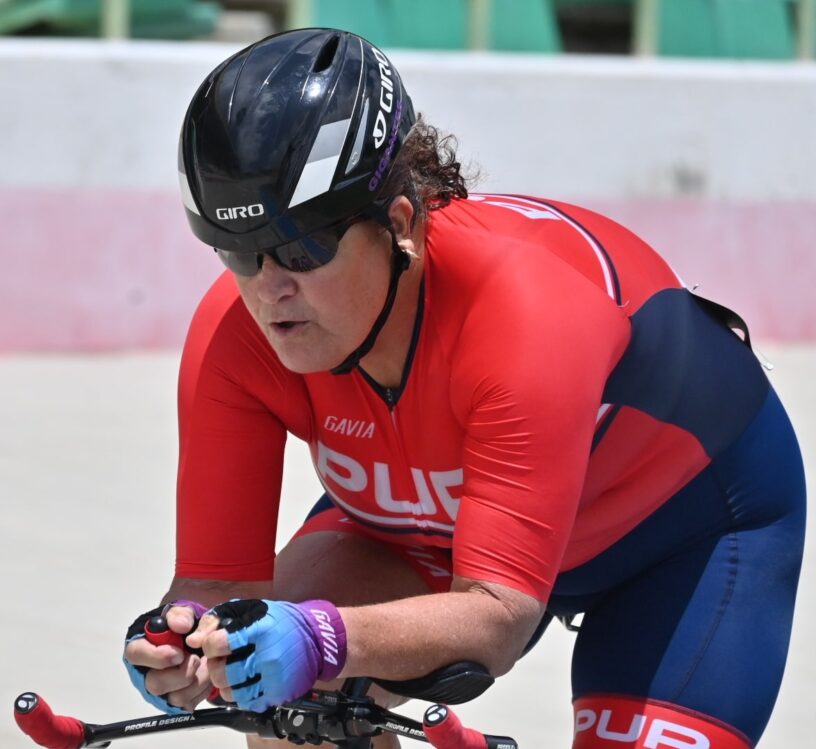Juana Fernández Veras (50-54 años) continúa cosechando triunfos en el deporte que le apasiona: el ciclismo. La veterana corredora se impuso en la prueba por puntos de los Campeonatos Panamericano de Ciclismo Máster Santo Domingo 2023. (Foto: Manolito Jiménez).