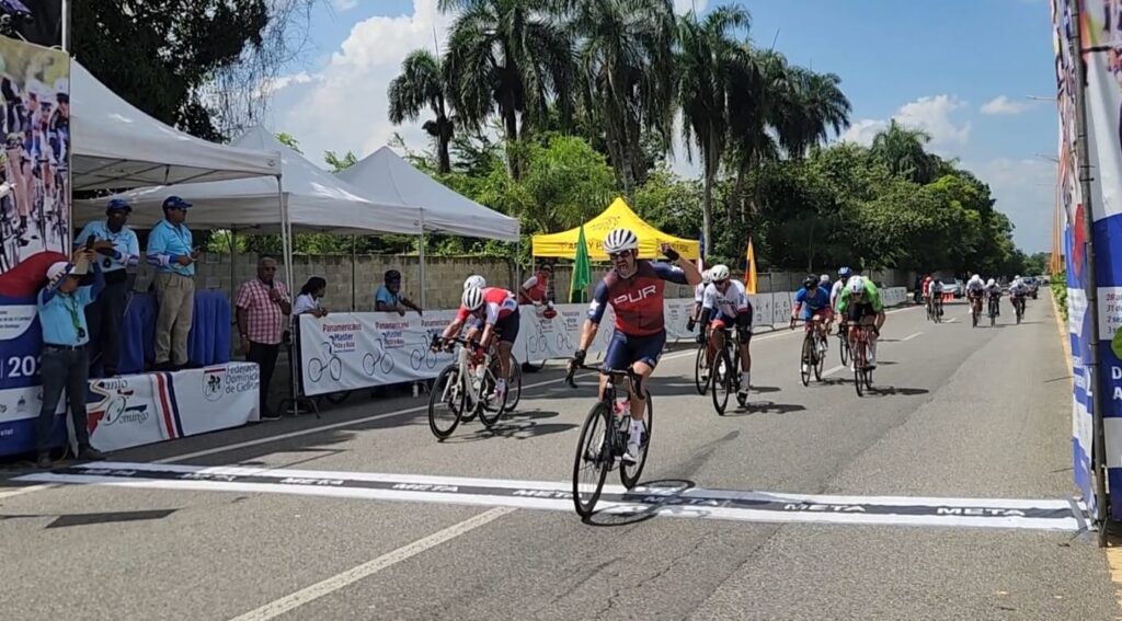 El dominicano Jose Frank Rodriguez conquisto al esprint la medalla de oro en la prueba de ruta de los Campeonatos Panamericanos de Ciclismo Master de Pista y Ruta Santo Domingo 2023 que se disputó en El Higuero, de Santo Domingo Norte. (Foto: Jimmy Jaime Dávila).