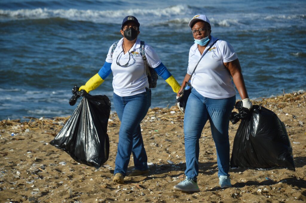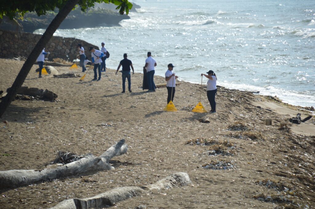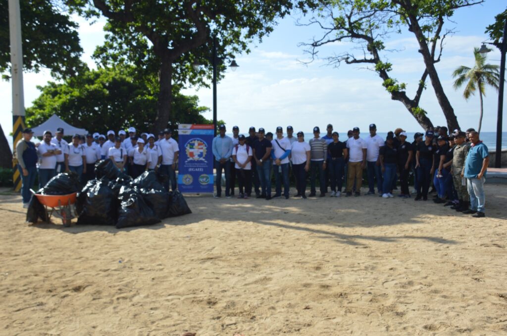 En apoyo al proyecto de reciclaje “Protegiendo nuestro futuro” que impulsa la Asociación Dominicana de Esposas de Oficiales de las Fuerzas Armadas (ADEOFA), autoridades, cursantes y el personal administrativo de la Escuela de Graduados de Altos Estudios Estratégicos (EGAEE) de la Universidad Nacional para la Defensa (UNADE), realizaron una jornada de recolección de desechos sólidos en la playa de Güibia, de la avenida George Washington, Distrito Nacional.