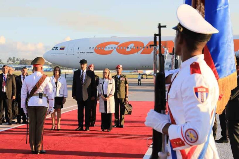 El mandatario, junto a su esposa Cilia Flores, llegó al aeropuerto internacional José Martí, tras realizar una gira por China, que el mismo calificó la víspera de exitosa, y Argelia.