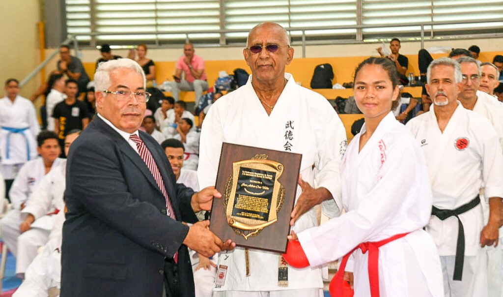 Con contundentes aplausos fue recibido el histórico Antonio -Chuchú- Cruz, quien próximamente será exaltado al salón de los inmortales de las artes marciales dominicanas, recibió una placa de reconocimiento que le entregaron el presidente de FEDOKARATE, José Luís Ramírez y la campeona Scarlet Yamilex, junto a la gobernadora, la presidente y otros ejecutivos de UDESA, el federado Severiano Rosa, presidente de la Asociación de Karate de Santiago y director general del evento, así como un conjunto entrenadores, profesores, técnicos, atletas y viejas glorias del karate.