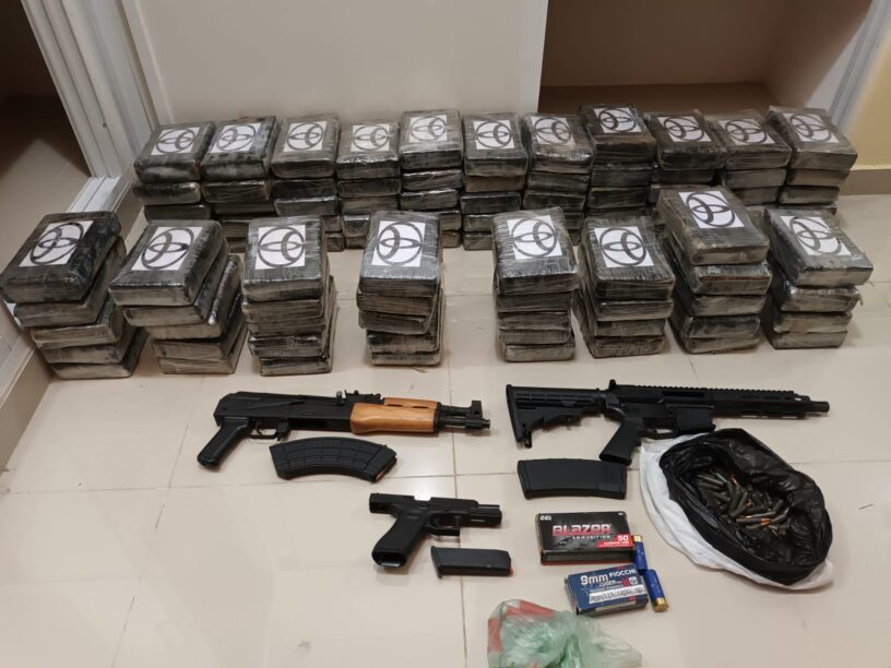Santo Domingo, R. D., 22 de septiembre, 2023.- En una operación de interdicción conjunta, agentes de la Dirección Nacional de Control de Drogas (DNCD) y miembros del Ministerio Público, desmantelaron una poderosa estructura de narcotráfico, donde incautaron más de 90 paquetes presumiblemente cocaína, armas de alto calibre, dinero en efectivo, prendas, vehículos y otras evidencias, en varios allanamientos simultáneos desarrollados en la provincia de San Pedro de Macorís.