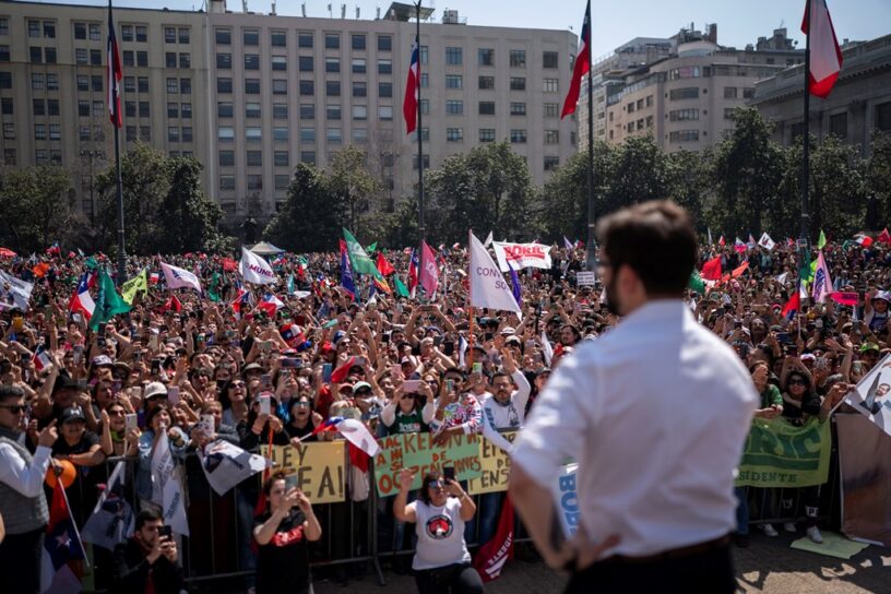 Santiago de Chile, 30 sep (Prensa Latina) Miles de chilenos se concentraron hoy en la Plaza de la Constitución para apoyar el programa del Gobierno del presidente Gabriel Boric, en momentos en que la derecha frena reformas como la tributaria y la de pensiones.