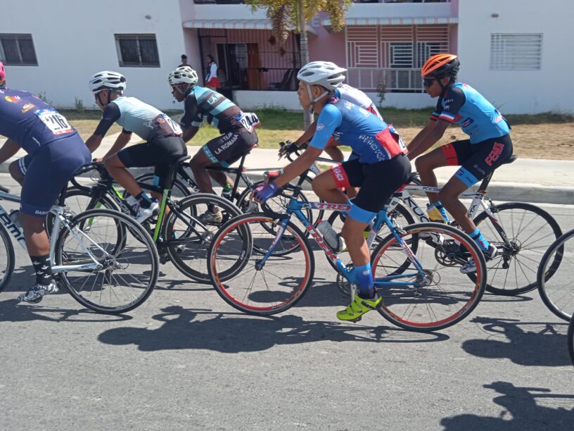 Vista del pelotón pre-juvenil que accionó en el Grand Prix del Sur, corrido en febrero pasado en San Juan de la Maguana. En la imagen aparecen ciclistas de los equipos Fénix-La Bicicletería, La Romana, San Juan de la Maguana y Barahona. (Foto: Ramón Martín Olivo).