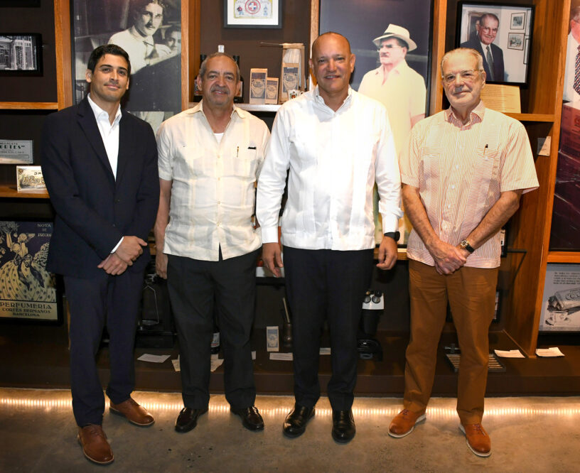 Fotografía Principal Eduardo Cortés, Vicepresidente de Operaciones, Víctor Hidalgo, Director Ejecutivo Comisión Nacional de Cacao, Ulises Rodríguez, Director General de ProIndustria y el Sr. Ignacio Cortés Gelpí, Presidente de Cortés Hermanos.