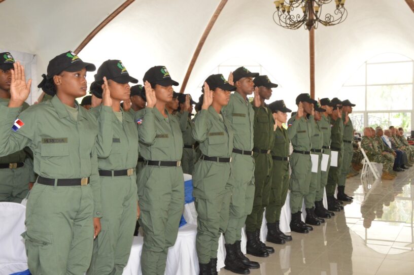 Santo Domingo, R. D., 12 de octubre, 2023.- La Dirección General del Servicio Militar Voluntario (SMV), del Ministerio de Defensa (MIDE) celebró su novena graduación ordinaria del Entrenamiento Militar Básico en la que 58 jóvenes de ambos sexos completaron satisfactoriamente el programa, en un acto presidido por el ministro de Defensa, teniente general Carlos Luciano Díaz Morfa, ERD.