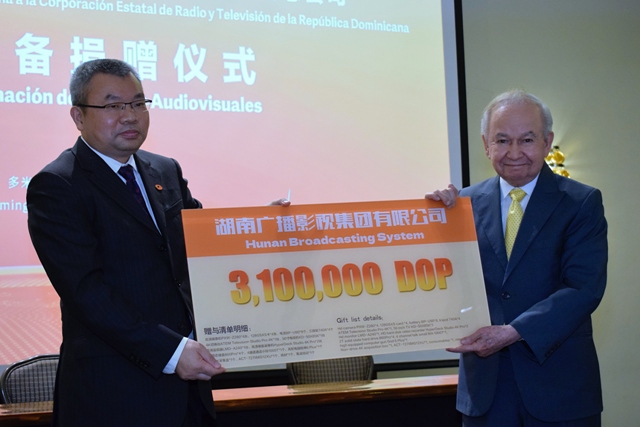 _DSC0295 Gorg Zheng Wen entrega a Ellis Pérez el donativo para la plata RTVD.