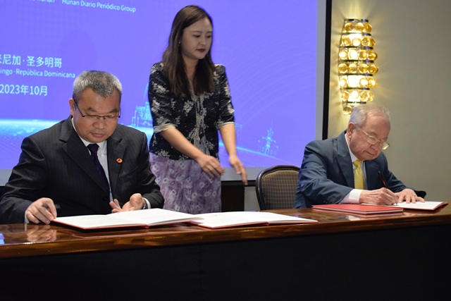 _DSC0284 Gorg Zheng Wen y Ellis Pérez Firman el acuerdo de colaboración con RTVD.