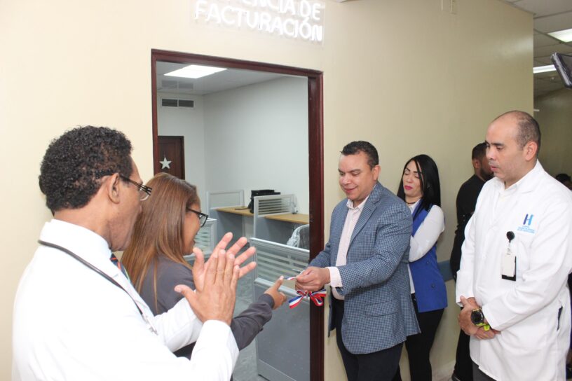 El director del Hospital Docente Universitario Traumatológico Dr. Ney Arias Lora, doctor Julio Landrón, junto al personal médico y administrativo, dejó inaugurado este lunes el área de Facturación en el centro de salud ubicado en el segundo nivel.