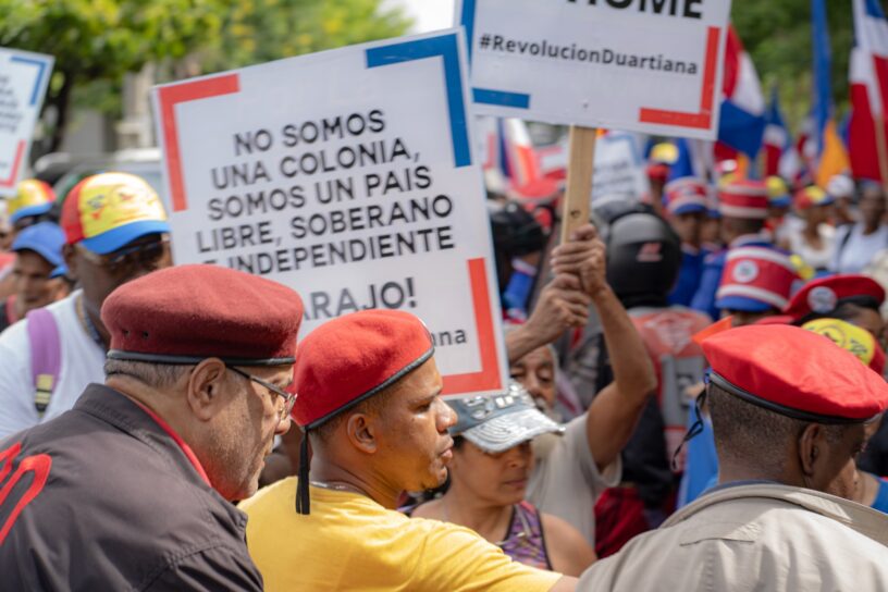 La Unión Demócrata Cristiana -UDC- movilizó a cientos de personas al montar un piquee ante la oficina local de las Naciones Unidas, en protesta por las acusaciones de que la República Dominicana es co-responsable del trasiego de armas para las pandillas haitianas.