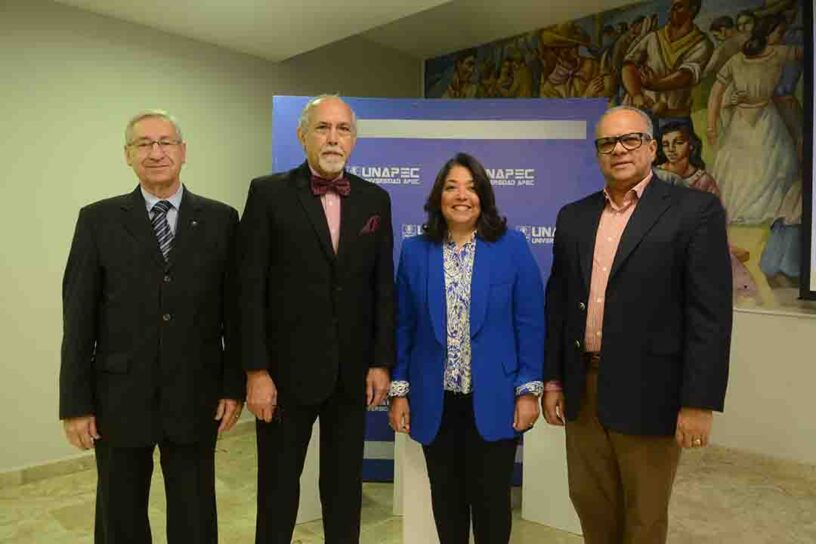 El acto tuvo lugar en el Salón APEC de la Cultura José María Bonetti Burgos, de Unapec, y estuvo encabezado por el vicerrector académico, Prof. Carlos Sangiovanni, y el decano de la Facultad de Humanidades, Licdo. Alejandro Moscoso Segarra.