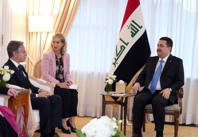BAGDAD, 5 nov (Xinhua) -- El secretario de Estado de Estados Unidos, Antony Blinken, llegó esta noche a la capital iraquí de Bagdad y mantuvo conversaciones con el primer ministro iraquí, Mohammed Shia' al-Sudani, sobre el conflicto entre Hamas e Israel en la Franja de Gaza, se indicó en una declaración de la oficina de prensa de Al-Sudani. El premier reiteró el llamado de Irak para un cese al fuego inmediato y la apertura de corredores seguros para evitar el deterioro de la crisis humanitaria, la cual ha afectado trágicamente a los civiles, incluyendo a mujeres y niños, añadió la declaración. Por su parte, Blinken afirmó la disposición de su país para continuar con la coordinación y cooperación bilaterales con Irak para aumentar la estabilidad regional e internacional. Después de la reunión, Blinken dijo en una conferencia de prensa que "se han realizado buenos avances en las discusiones relacionadas con una tregua humanitaria en Gaza". Blinken destacó que Estados Unidos no busca ninguna confrontación con Irán y añadió que "realizaremos nuestros esfuerzos para garantizar que el conflicto no se extienda más allá de Gaza". Blinken dijo que "un muy claro mensaje es enviado a aquellos que amenazan al personal militar de Estados Unidos y es que no deben hacerlo". De acuerdo con medios de comunicación locales, la visita de Blinken a Irak se realizó como parte de su gira en Oriente Medio que incluyó a Israel, Jordania y Palestina, en donde se reunió con altos funcionarios para discutir la evolución del conflicto entre Israel y Hamas. El conflicto entre Israel y Hamas, el cual ha durado cerca de un mes, ha causado la muerte de 9.770 palestinos en Gaza, mientras que en Israel más de 1.400 personas han perdido la vida.