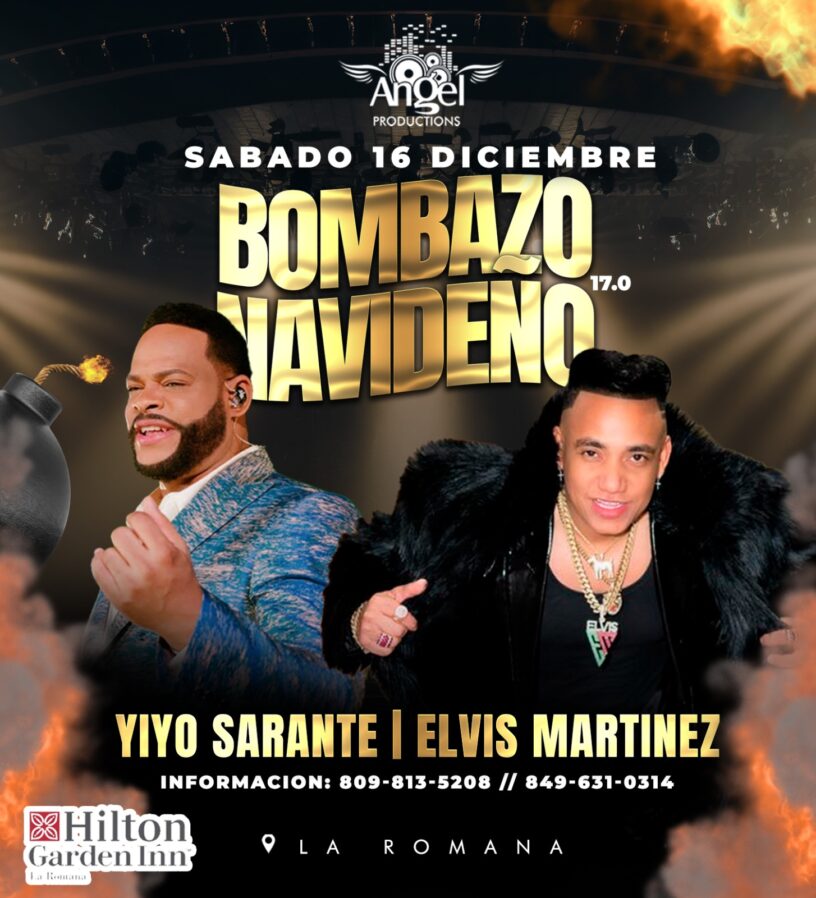 Santo Domingo, República Dominicana.- Angel Production anuncia el espectáculo el Bombazo Navideño con Yiyo Sarante y Elvis Martínez para este sábado 16 de diciembre en el Hilton Garden Inn de La Romana.