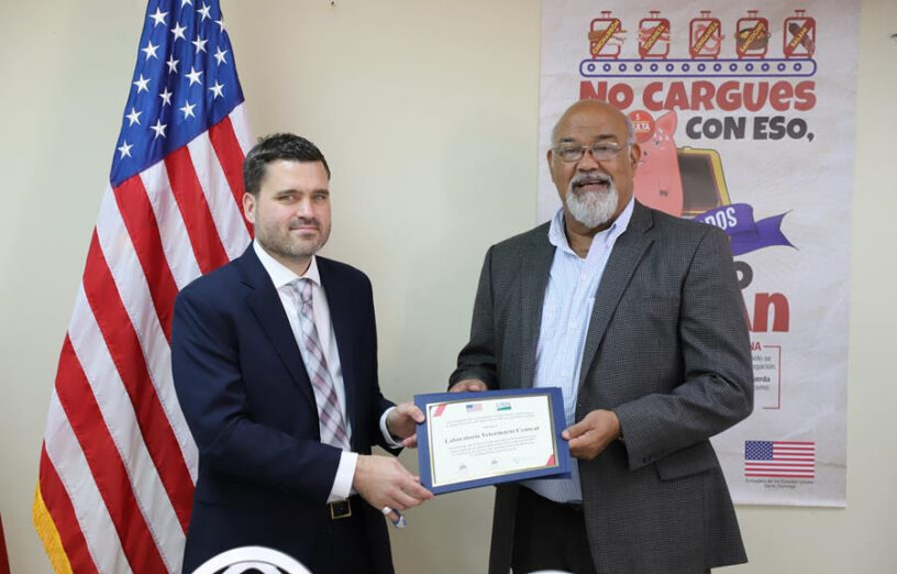 Santo Domingo, D.N. – La Embajada de los Estados Unidos en Santo Domingo donó este miércoles al Laboratorio Veterinario Central (LAVECEN), equipos de laboratorio y asistencia técnica valorados en US$3 millones de dólares con el fin de continuar apoyando a la República Dominicana en su lucha contra la propagación de la Peste Porcina Africana (PPA).