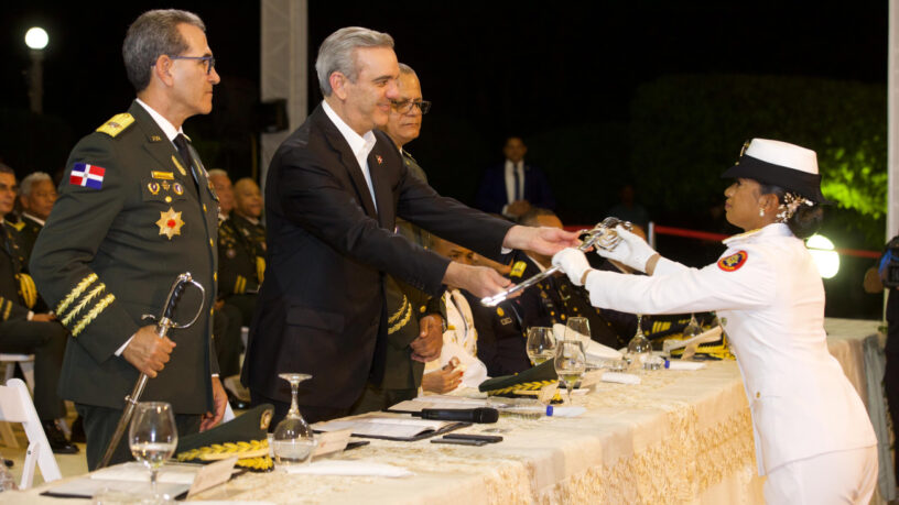 Al cumplir con los requisitos propios de su programa académico, reconocido por el sistema de educación superior del país, a través del Ministerio de Educación Superior, Ciencia y Tecnología (Mescyt), los integrantes de la promoción «Capitán Juan Isidro Pérez de la Paz», recibieron el sable de mando de manos del primer mandatario.